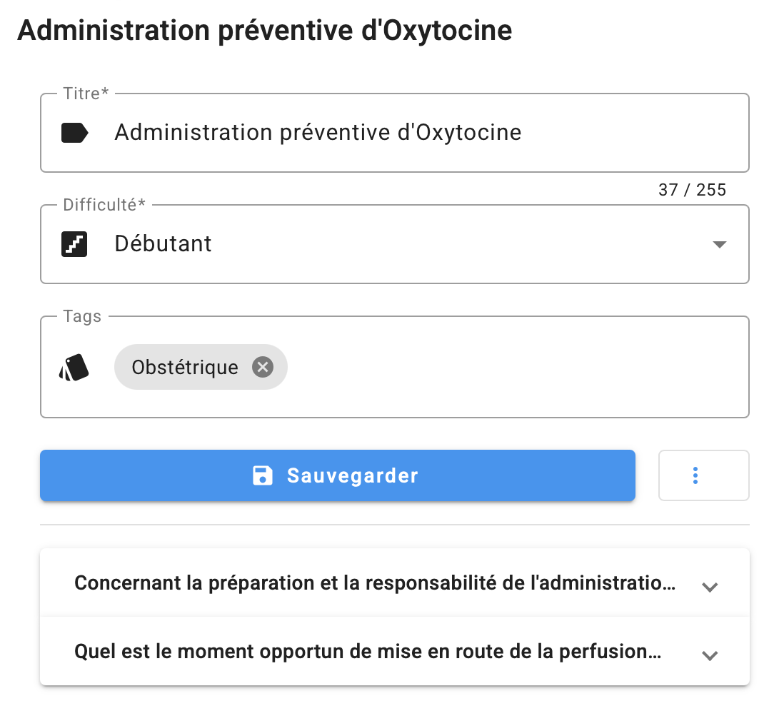 Le détail du quiz s’affiche dans la partie droite de l’écran, comme illustré dans la figure suivante.